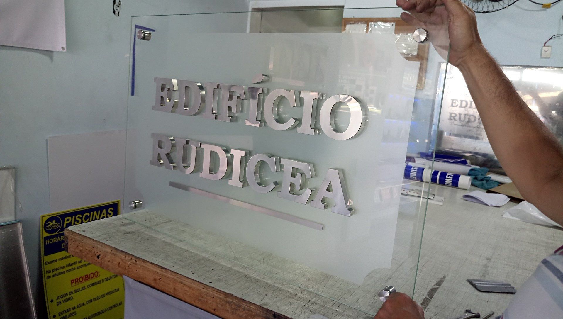 As Placas de Vidro com LOGOTIPO ou LETRAS é uma excelente forma de apresentar sua empresa à todos que visitam seu escritório, consultório, escola e qualquer outro tipo de estabelecimento. Podem ser executadas com letras de aço inox em relevo, letras de chapa galvanizada pintada ou letras de acrílico com recorte a laser. As Placas de Vidro Podem ser feitas também com a composição sem relevo em vinil alto adesivo recortado por computador ou através de impressão digital laminada no vidro.