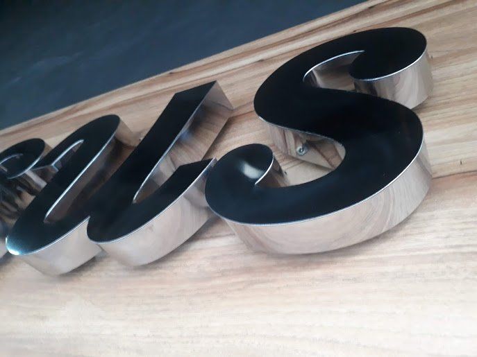 Letras de Aço Inox Polido, Letras Caixa em Aço Polido, Letra Caixa em Aço Inox Polido, Block-Letter de Aço Polido, Block-letter de Aço Inox Polido, Letra em Relevo de Aço Polido, Letras em Relevo de Aço Inox Polido, Letras 3D em Aço Inox Polido ou