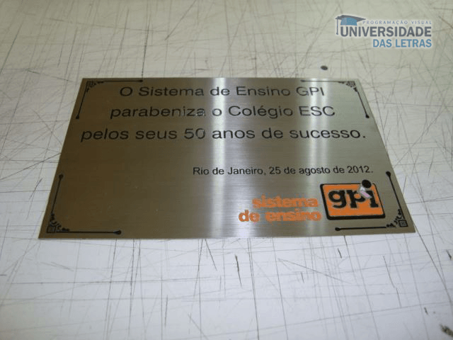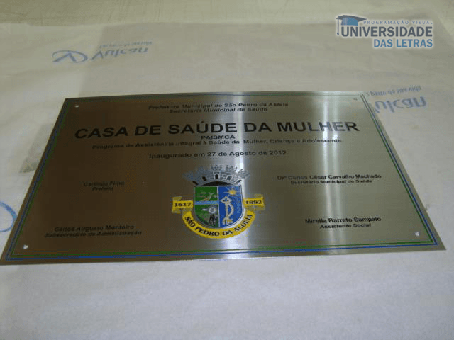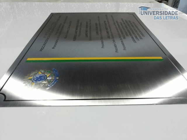 A Universidade das Letras atende a pequenas e grandes demandas de PLACAS DE AÇO INOX no Estado do Rio de Janeiro. As placas em aço inox podem ser produzidas pelos processos de foto corrosão em baixo ou alto relevo, em impressão UV direto na placa (até medida de 30x20cm) ou em vinil em impressão digital laminado direto na placa.