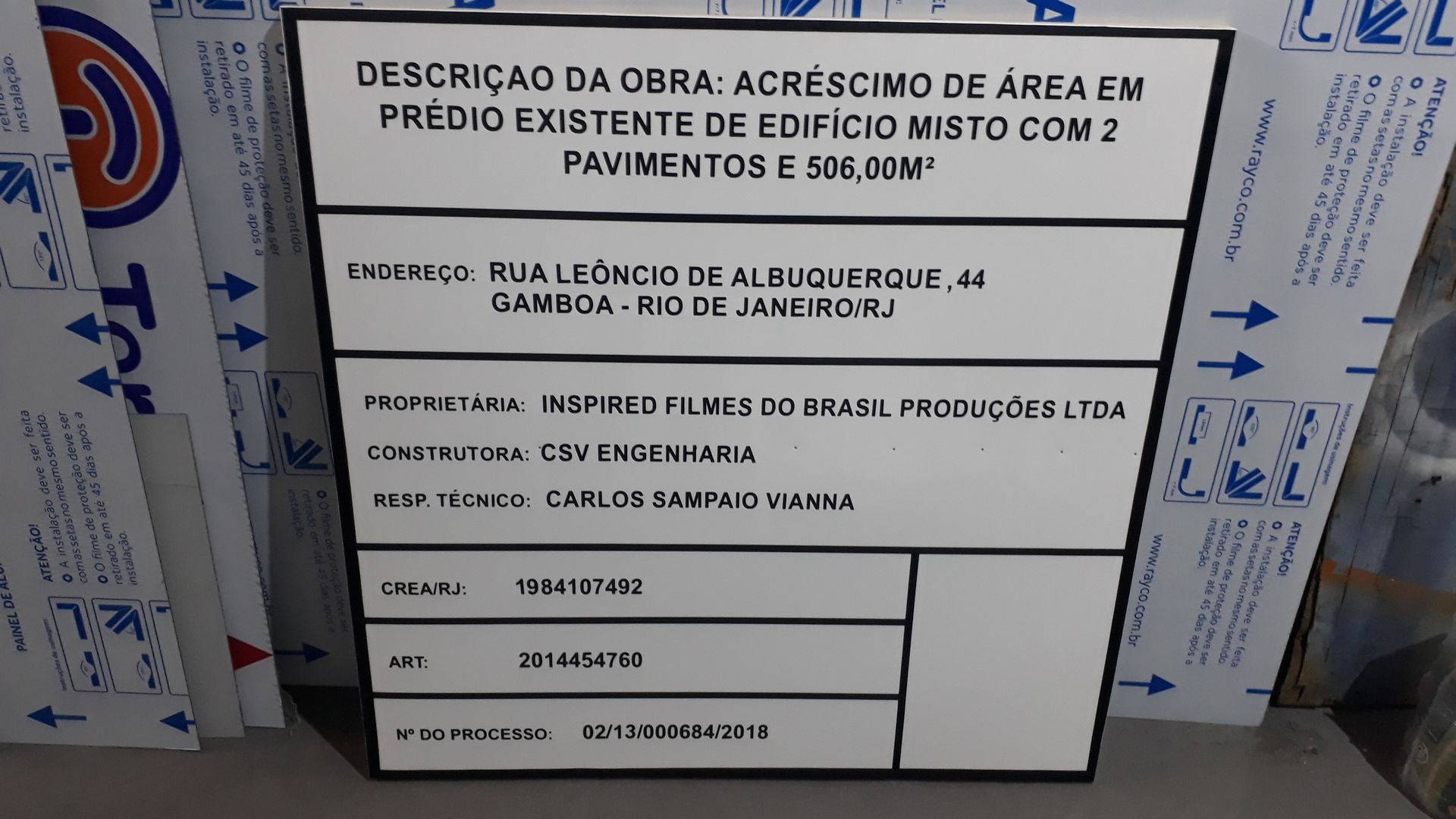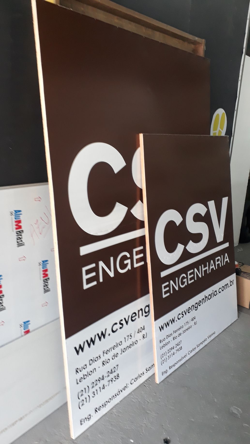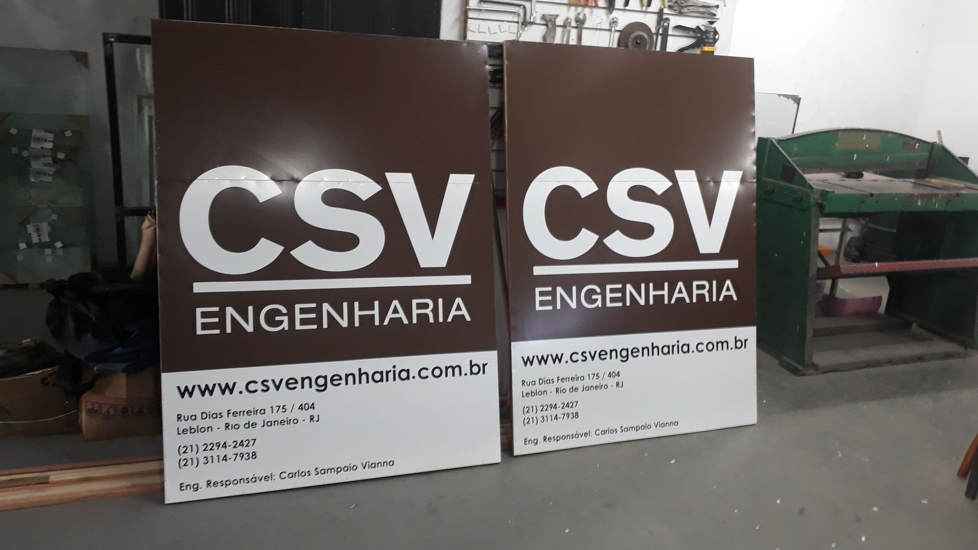 As Placas de Obra podem ser confeccionadas em chapa galvanizada com laminação de vinil em impressão digital, em lona em impressão digital e em PVC de 2mm de espessura com laminação em vinil com impressão digital podendo, em todos os materiais, serem estruturadas em metalon (ferro) ou madeira. No caso de placas pequenas podem ser feitas sem estrutura em PVC laminado com vinil impresso ou em lona impressa com ilhoses nas extremidades.