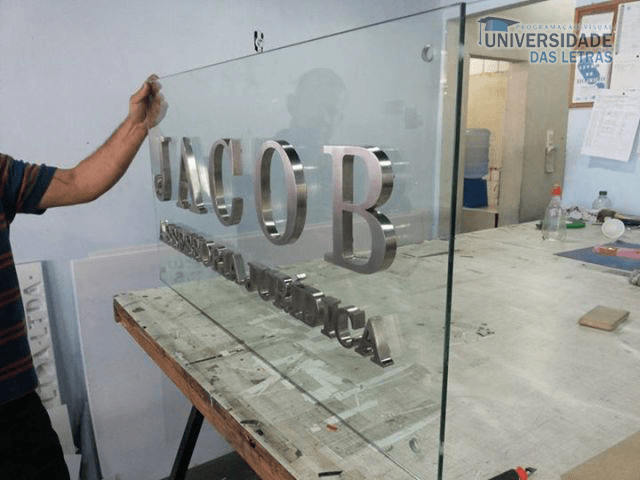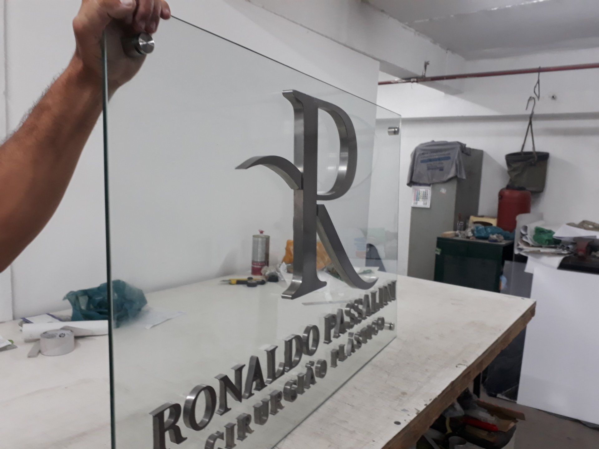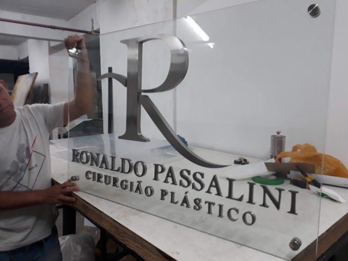 As Placas de Vidro com LOGOTIPO ou LETRAS é uma excelente forma de apresentar sua empresa à todos que visitam seu escritório, consultório, escola e qualquer outro tipo de estabelecimento. Podem ser executadas com letras de aço inox em relevo, letras de chapa galvanizada pintada ou letras de acrílico com recorte a laser. As Placas de Vidro Podem ser feitas também com a composição sem relevo em vinil alto adesivo recortado por computador ou através de impressão digital laminada no vidro.